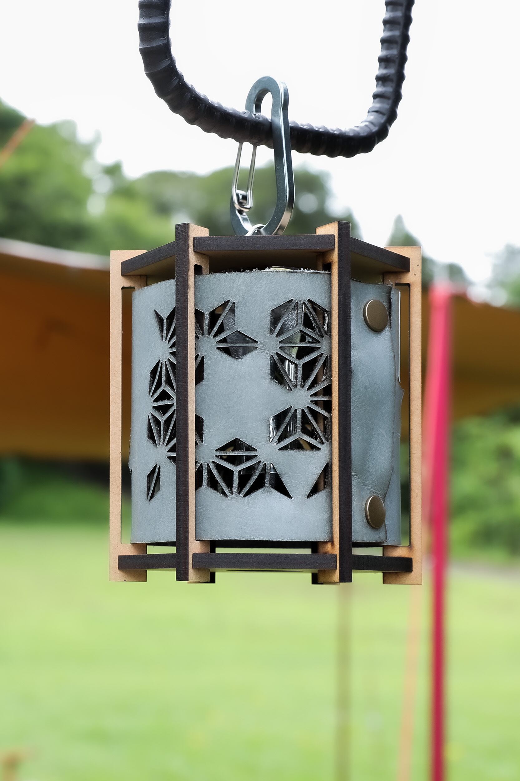 木製のフレームと取り替え可能なレザーの幕を合わせたシェード
